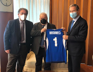 Il presidente della Regione Nello Musumeci ha incontrato al PalaRegione di Catania il presidente della Federazione italiana di pallavolo Giuseppe Manfredi, accompagnato dal consigliere nazionale della stessa Federazione Davide Anzalone e dal responsabile territoriale per i rapporti istituzionali Giuseppe Leanza. Durante il cordiale colloquio si è discusso, oltre che dei temi riguardanti l’impiantistica sportiva in Sicilia, anche della possibilità di organizzare, il prossimo anno nell’Isola, alcuni eventi a carattere nazionale e internazionale. Una scelta dovuta pure alla grande risonanza mediatica e turistica che il volley sta riscuotendo, non soltanto tra gli appassionati, dopo i successi delle due nazionali maggiori laureatesi campioni d'Europa. Alla fine dell'incontro, Manfredi ha donato a Musumeci la maglia della nazionale campione d'Europa, personalizzata con il suo nome.